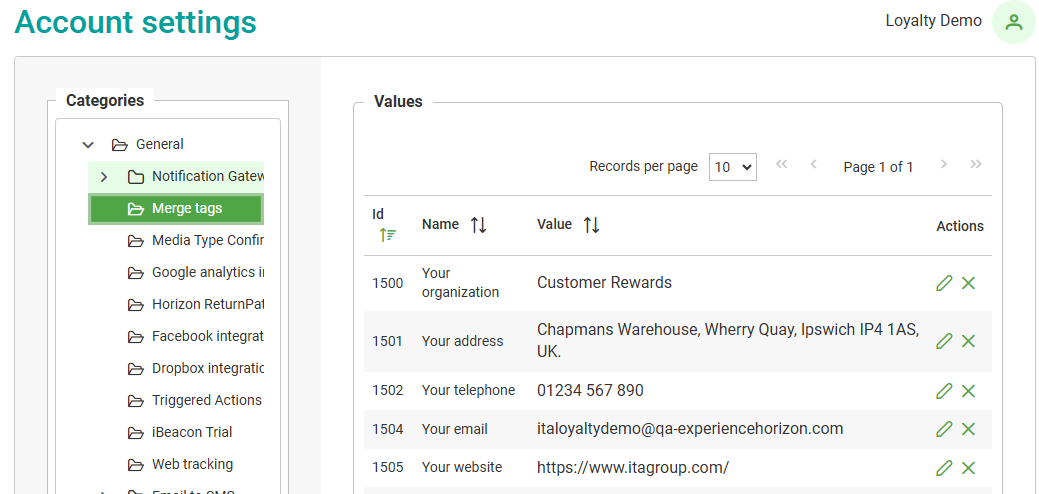 If you need to change the information for any of your Merge tags, do the following:
