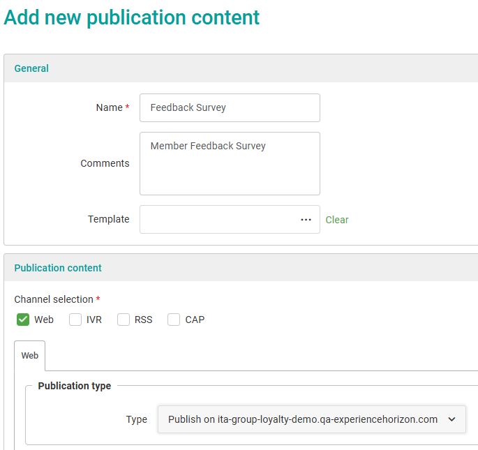 - Select a publication template as the starting point for your web landing page, or follow the steps below. You can create publication templates to make creating a page easier. To do this, go to 'Re-usable templates' under 'Publication Content'. Set up is the same process as below.