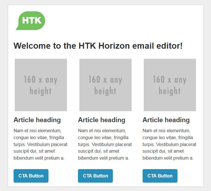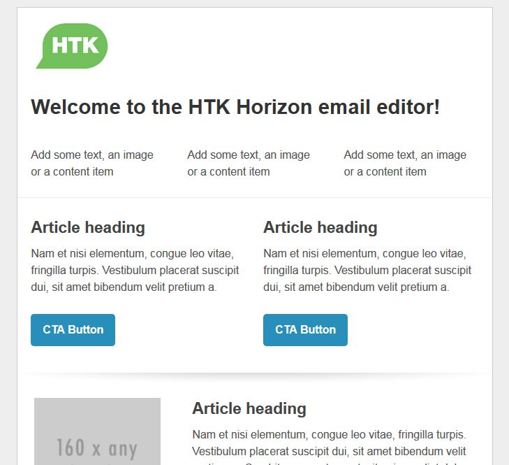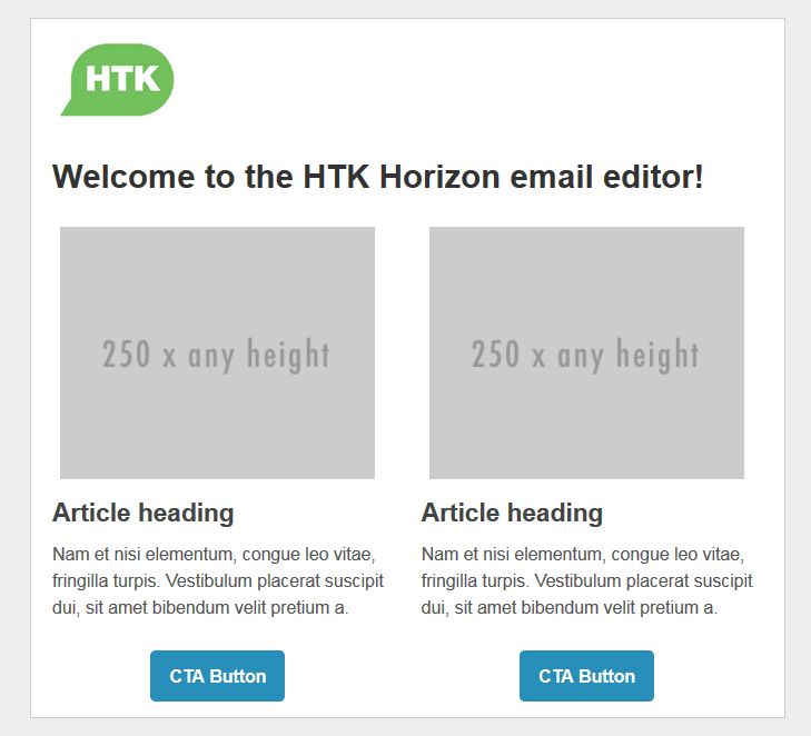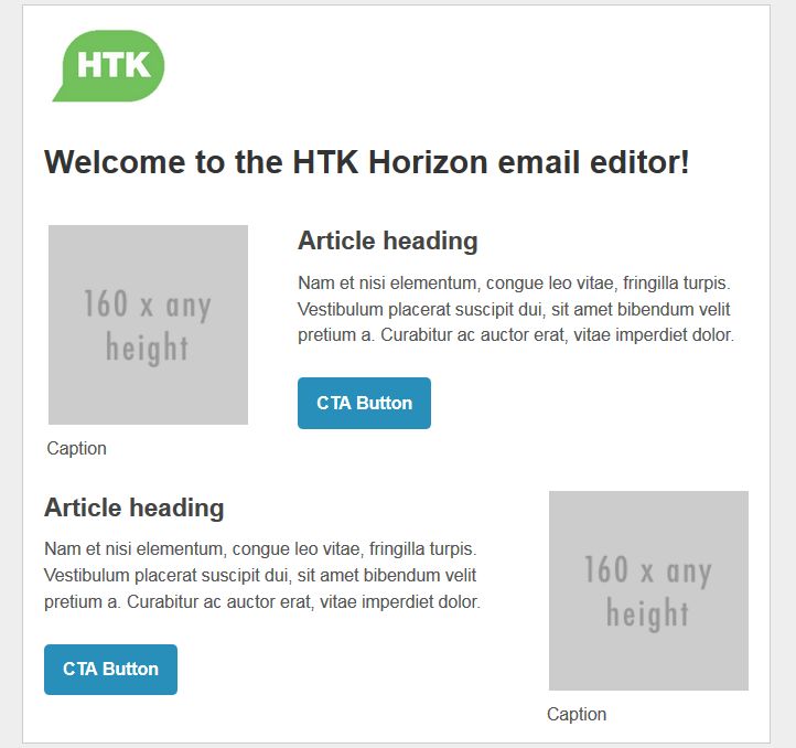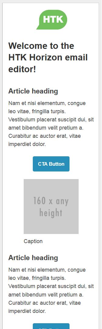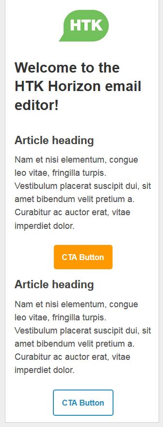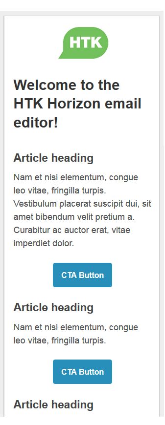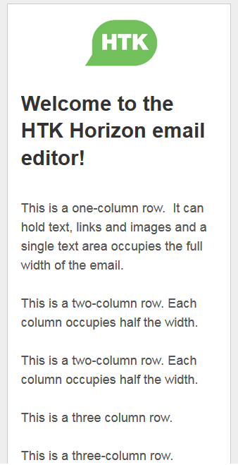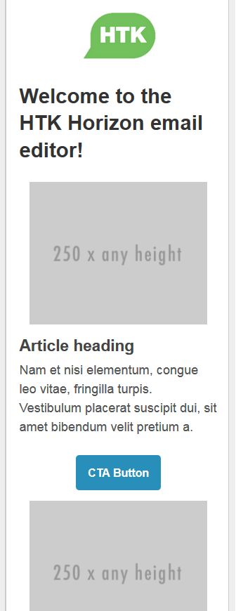 All standard email custom blocks in Horizon are mobile-responsive, and have been designed and tested to work well on desktop, web mail and mobile email systems.