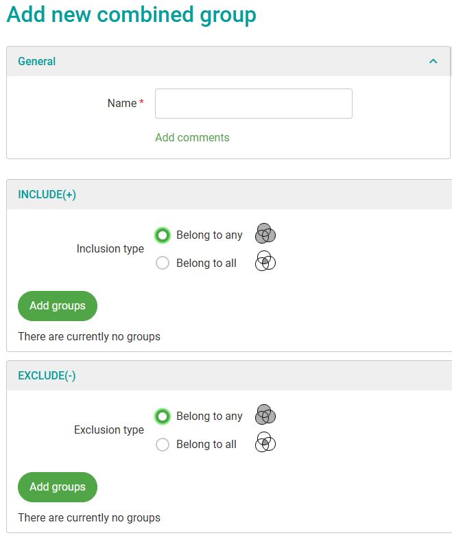 5. There are two sections to a combined group, the 'INCLUDE' groups and the 'EXCLUDE' groups. You can add groups to either one, however both sections don't have to be used (e.g. you could have some include groups only).