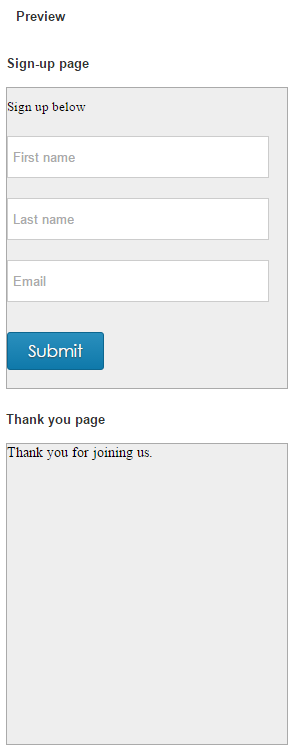 - Change the height and width of the widget if desired. The widget on the right hand side will update so that you can see the changes you have made. Note that the ‘Sign-up page’ and the ‘Thank you page’ use the same dimensions.