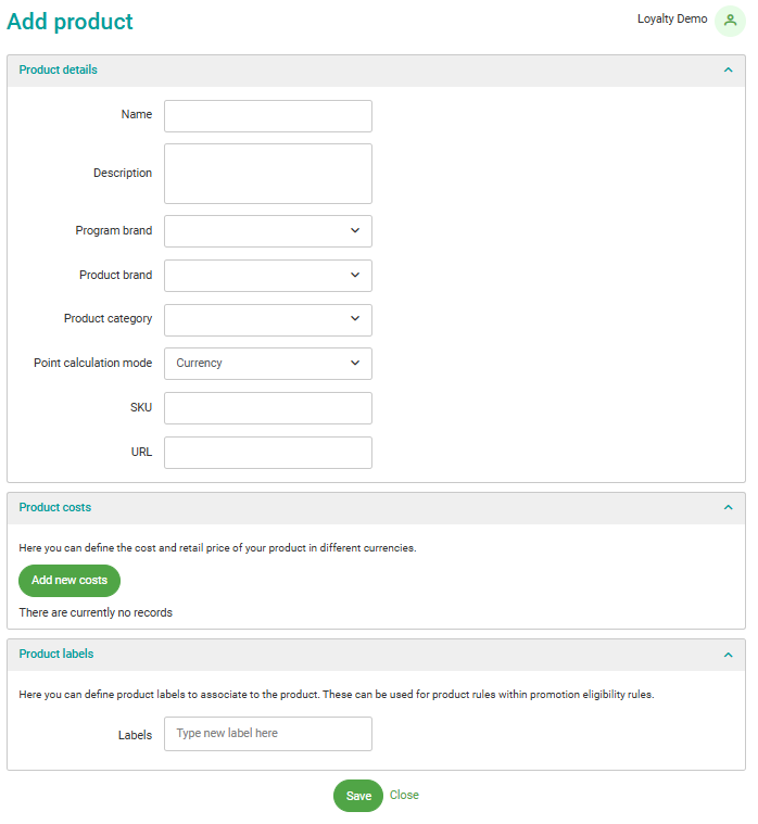 To add a new product simply click on the “Add a new product” button on the “Products” screen. This will present the following screen: